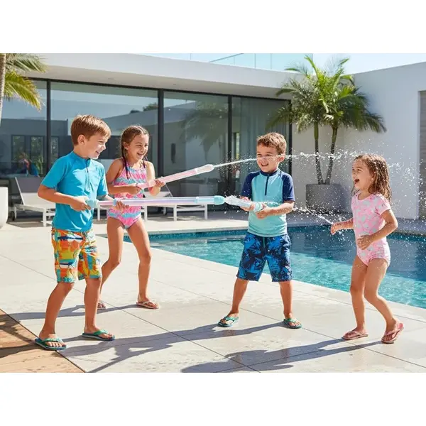 A játék a klasszikus vízifecskendő elvén működik: mártsd a végét vízbe, húzd hátra a kart a feltöltéshez, majd nyomd előre, és a víz erős sugárban lövell ki az elején, akár egy mini vízágyú. Az egyszerű, mégis hatékony megoldás gyors, pörgős vízicsatákat tesz lehetővé.