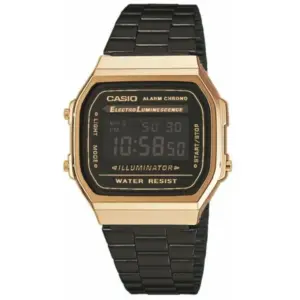 A Casio A168WEGB-1BEF uniszex karóra a klasszikus digitális stílust ötvözi modern megjelenéssel. Az aranyszínű tok és a fekete rozsdamentes acél szíj elegáns, mégis könnyen viselhető összhatást ad, így hétköznapi és alkalmi öltözékhez is remek választás. A jól olvasható digitális kijelző gyorsan megmutatja az időt, a dátumot és a hét napját, LED-világítással pedig gyengébb fényviszonyok között is kényelmesen használható.