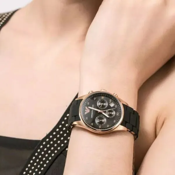 Sportosan elegáns uniszex karóra fekete acél szíjjal és rózsaarany tónusú tokkal, amely könnyen illik hétköznapi és alkalmi szettekhez is. A kronográf, a dátum és a 24 órás kijelzés praktikus a mindennapokban, a WR50 vízállóság pedig megnyugtató védelmet ad kisebb fröccsenések ellen.
