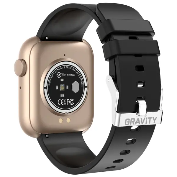 A téglalap alakú óraház rózsaarany színben elegáns, a fekete szilikon szíj pedig sportos és kényelmes. A tartós ásványi üveg és a könnyű, ellenálló műanyag ház (ABS+PC) jól bírja a mindennapi használatot.