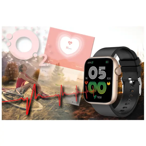 Ez a modern, uniszex okosóra kényelmesen viselhető szilikon szíjjal, nagy, 1,85″-os TFT érintőkijelzővel és Bluetooth-kapcsolattal segít, hogy egyetlen pillantással képben maradj. A beépített mikrofon és hangszóró révén a hívásokat akár csuklóról is intézheted, így nem kell elővenned a telefont.