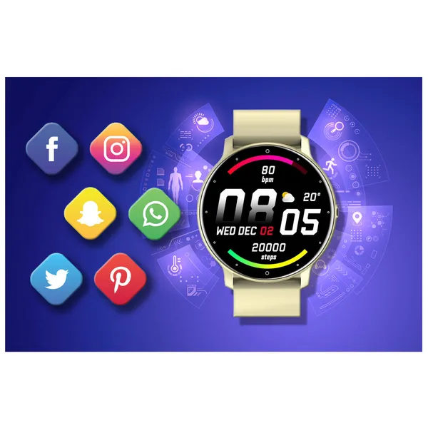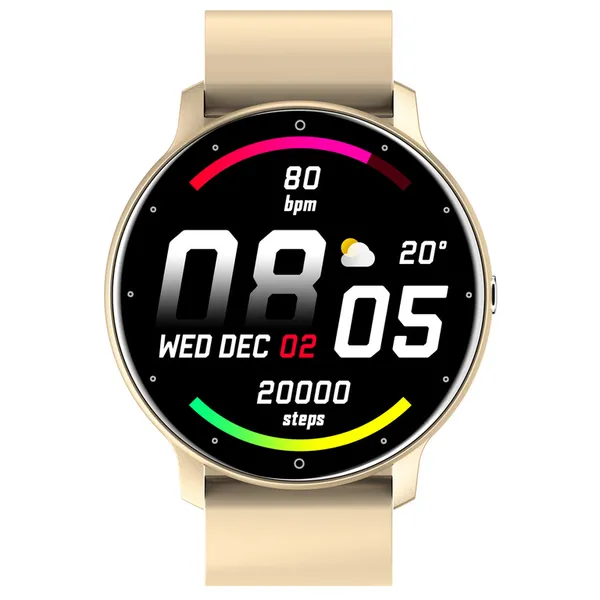 Ez a bézs színű, kerek számlapos uniszex okosóra praktikus társ a mindennapokban és az edzések során. Az 1,28 hüvelykes IPS érintőkijelző 240 x 240 pixeles felbontással jól látható, a Bluetooth 5.0 kapcsolat pedig stabil és energiatakarékos működést biztosít. Android 5.0 vagy újabb, illetve iOS 9.0 vagy újabb rendszerű készülékekkel kompatibilis.