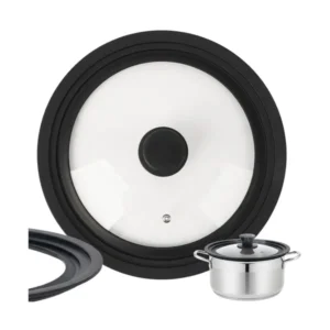 Egyetlen fedő három mérethez (24/26/28 cm), így kevesebb helyet foglal, mégis mindig kéznél van a megfelelő illeszkedés. A szilikon perem stabilan felfekszik és kíméli az edényeket, a hőálló üveg pedig megkönnyíti a főzés ellenőrzését gőzkivezetéssel.