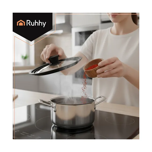 • Hőálló üveg: rálátást ad a főzésre fedőemelés nélkül, kevesebb fröccsenéssel.