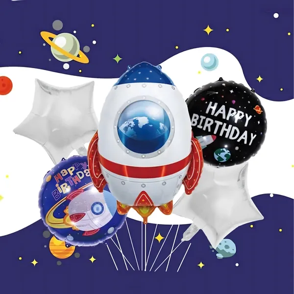 Ragadd meg a gyerekek fantáziáját egyetlen csomaggal! Az 5 részes, űr témájú fólia lufi szett látványos központi eleme lesz a születésnapi zsúrnak vagy bármely sci-fi hangulatú rendezvénynek.