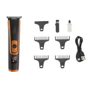 USB‑C tölthető szakáll- és hajnyíró T‑pengével, 4 fejjel