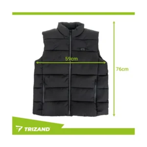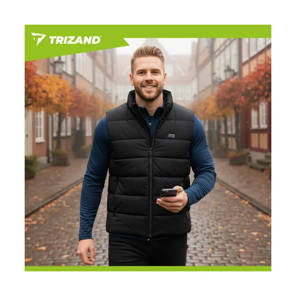 A tápellátás USB-n keresztül történik: a bal oldali belső zsebben kialakított csatlakozóhoz power bank csatlakoztatható (nem tartozék), így útközben, munkában vagy kiránduláskor is rugalmasan használható. A magas, puha bélésű állógallér védi a nyakat a széltől, a cipzáras záródás pedig praktikus és gyors felvételt biztosít.