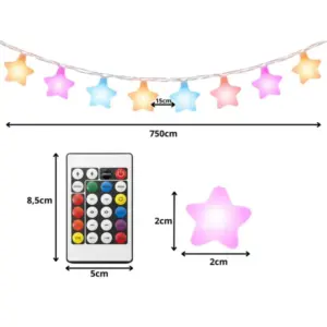 Dobd fel a szobát, erkélyt vagy egy bulit látványos, csillag alakú RGB LED fényfüzérrel! A világítás színeit, fényerejét és effekteket kényelmesen vezérelheted mobilalkalmazással vagy a mellékelt távirányítóval.
