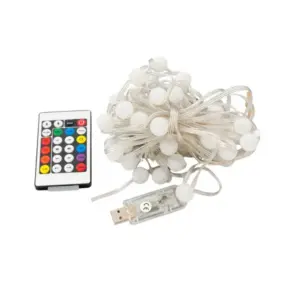 USB-s RGB LED fényfüzér dekor gömbökkel, app és távirányító, 7,5 m