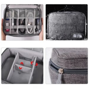 Eleged van a táskában vagy bőröndben gubancolódó kábelekből? Ez a vízálló, párnázott utazó rendező táska biztonságos helyet kínál minden töltőnek, pendrive-nak és apró elektronikai kiegészítőnek, miközben megóvja őket a sérülésektől utazás vagy mindennapi használat közben.