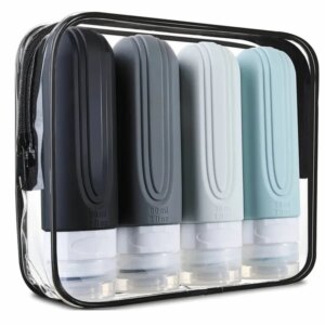 Utazó szilikon flakon szett repülőre, 4×90 ml + neszesszer