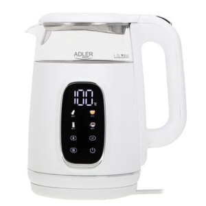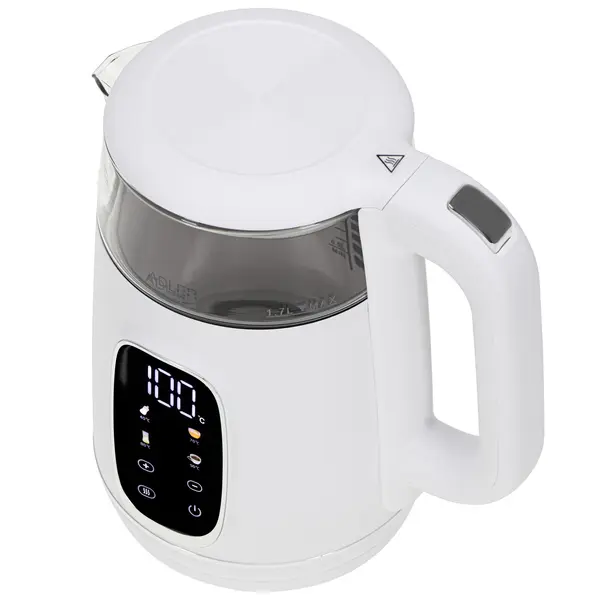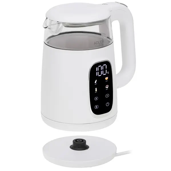 Elegáns, modern üveg elektromos vízforraló precíz hőfokszabályzással, amely ideális tea- és kávékészítéshez. Az érintőpanel és a színes LED kijelző kényelmes, gyors kezelést ad, a 2 órás melegen tartás pedig gondoskodik róla, hogy mindig kéznél legyen a megfelelő hőmérsékletű víz.