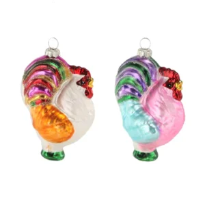 Kézzel fújt üveg kakas dísz szemkápráztató vegyes színekben, amely csillogó felületével és kompakt méretével könnyedén feldobja a fát anélkül, hogy lehúzná az ágakat. Ideális karácsonyi ajándék és stílusos kiegészítő bármely ünnepi dekorációhoz.