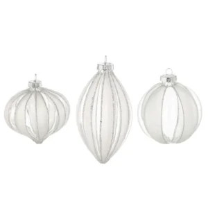Az áttetsző, vegyes mintájú üveg karácsonyfadísz készlet elegáns, mégis játékos hangulatot varázsol a fenyőre. A kristályosan csillogó felület kiemeli a fényfüzérek ragyogását, miközben a változatos minták egyedi karaktert kölcsönöznek.