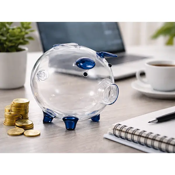 Üveg persely malac forma – átlátszó, érméhez és bankjegyhez