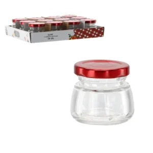 Üveg tároló befőttes üveg 150 ml, piros fém tető, 12 db display