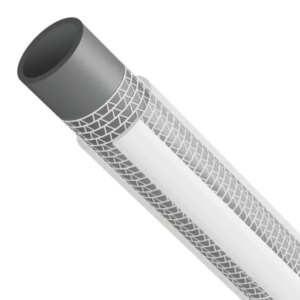 A megerősített, vastagabb, átlátszó külső borítás védi a tömlőt a mindennapos igénybevételtől. A poliészter fonalból készült kötött erősítés rugalmas, mégis strapabíró szerkezetet ad.