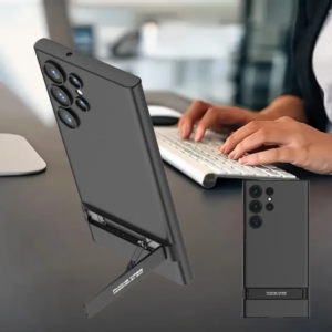 Elegáns, matt fekete tok integrált kitámasztóval, amely vékony kialakítása mellett ütéselnyelő TPU + PC védelmet és karcálló, csúszásmentes felületet biztosít Samsung Galaxy S24 Ultra készülékednek.