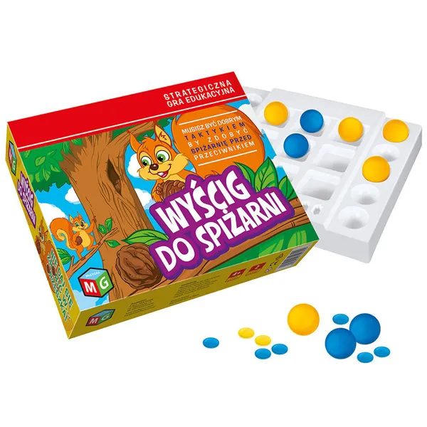A mókusoknak télire mogyorót kell felhalmozniuk, de csak az győz, aki elsőként rak egymás mellé három szem mogyorót a műanyag pályán. A Verseny a kamráig logikai társasjáték izgalmas módon fejleszti a taktikai gondolkodást és a stratégiai tervezést 5 éves kortól.