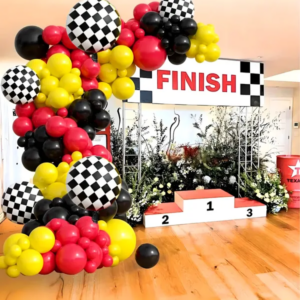 Varázsolj igazi versenypálya-hangulatot a buliba ezzel a komplett, 148 darabos lufi girland szettel! A fekete–fehér kockás minták és az élénk piros árnyalatok azonnal a Formula-1 világát idézik, miközben a strapabíró latex ballonsereg gondoskodik róla, hogy a dekoráció egész estig tökéletes maradjon.