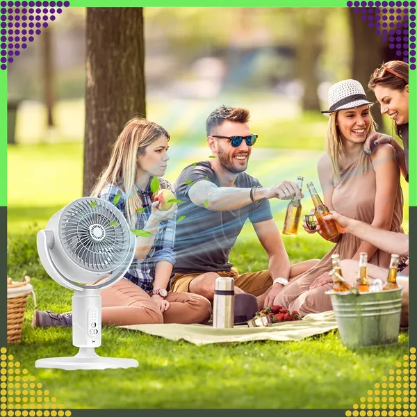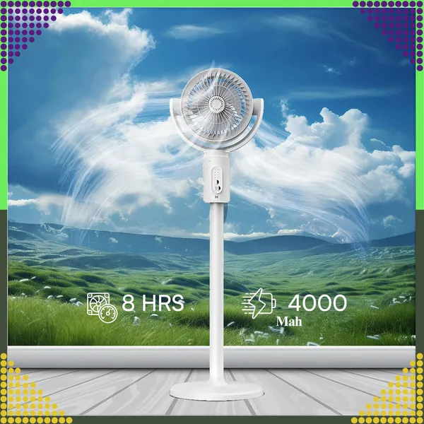 Az akkumulátoros, magasság-állítható ventilátor pillanatok alatt hűvöst varázsol a nappaliba, hálóba vagy a teraszra, miközben távirányítójával kényelmesen szabályozhatod a légáramot. Halk, energiatakarékos működése hosszú órákon át gondoskodik a komfortos klímáról.