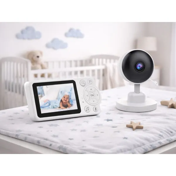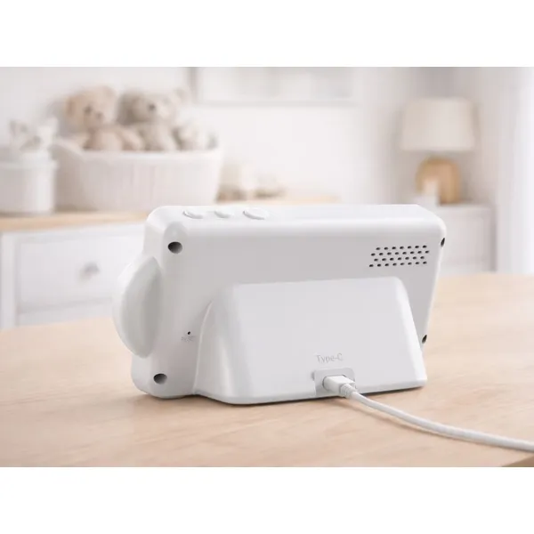 Vezeték nélküli bébiőr színes LCD kijelzővel, amellyel valós időben láthatja és hallhatja a babaszoba történéseit a lakás másik részéből is. A beépített mikrofon és hangszóró kétirányú kommunikációt tesz lehetővé, így meg tudja nyugtatni a kicsit anélkül, hogy bemenne a szobába.