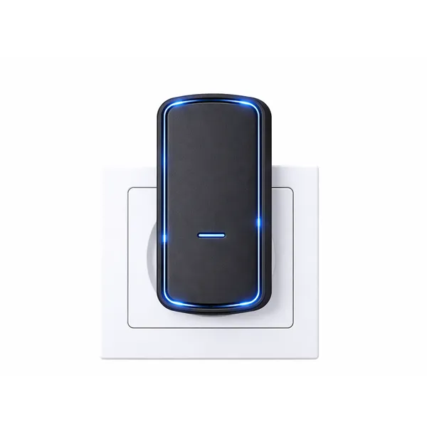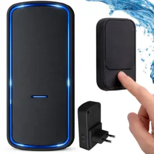 Elem nélküli, kinetikus kapucsengő: a nyomógomb megnyomáskor termel energiát, így nincs elemcsere és kevesebb gond a mindennapokban. A hangjelzést kék LED is kíséri, 38 dallam közül választhatsz, az IP68 vízállóság pedig megbízható működést ad kültéren is.