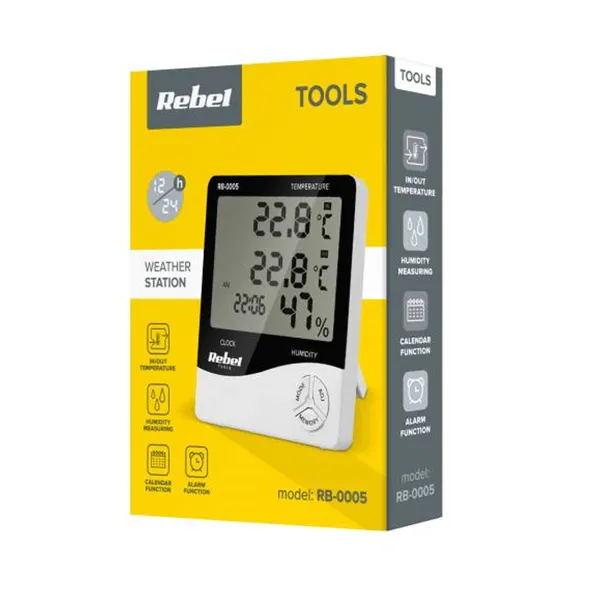 Segít kézben tartani a komfortot: megmutatja a beltéri hőmérsékletet, méri a páratartalmat, a külső szenzor pedig a kinti hőmérsékletről is tájékoztat. A 12/24 órás óra naptárral és ébresztővel praktikus a mindennapokban, vezeték nélküli kialakítása pedig rugalmas elhelyezést tesz lehetővé.