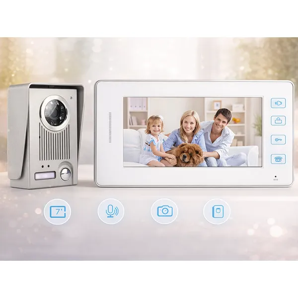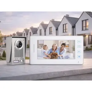Vezetékes videó kaputelefon kapukhoz és bejáratokhoz, amellyel kényelmesen láthatja, ki érkezett, és biztonságosan beszélhet vele anélkül, hogy ajtót nyitna. A 500 TVL felbontású kamera tiszta képet ad, a 90°-os látószög pedig nagyobb területet fed le a bejárat előtt.