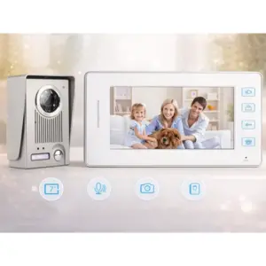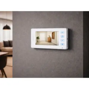 A beltéri egység kijelzőjén élőképet nézhet, és kétirányú hangkapcsolattal kommunikálhat a kinti egységgel. A rendszer támogatja a mágneszár távoli nyitását/zárását (a zár nem része a csomagnak), ami különösen praktikus kapunál, irodában vagy üzlethelyiségben. A csomag 10 m kábelt tartalmaz a könnyebb telepítéshez.