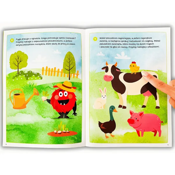 Matricás foglalkoztató a tanyasi élet felfedezéséhez: keresős játékokkal, labirintusokkal és kreatív feladatokkal tartósan leköti a gyerekeket. Az újra felragasztható matricák saját jeleneteket és történeteket adnak, miközben finoman fejleszti a figyelmet, a beszédet és a gondolkodást.