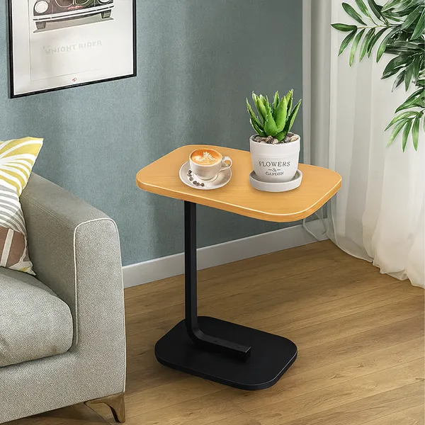 Világos C-alakú modern dohányzóasztal kanapé mellé