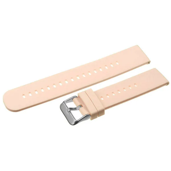 Világos rózsaszín gumióraszíj, amely kényelmes viseletet és modern megjelenést biztosít a mindennapokban.
