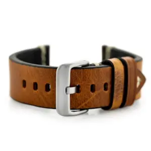 Természetes bőrből készült, kényelmes óraszíj, amely fehér varrásával és világosbarna árnyalatával elegáns, mégis sokoldalú megjelenést ad az órának. A 24 mm-es kialakítás és az állítható hossz stabil, kényelmes illeszkedést biztosít a mindennapi viselethez.