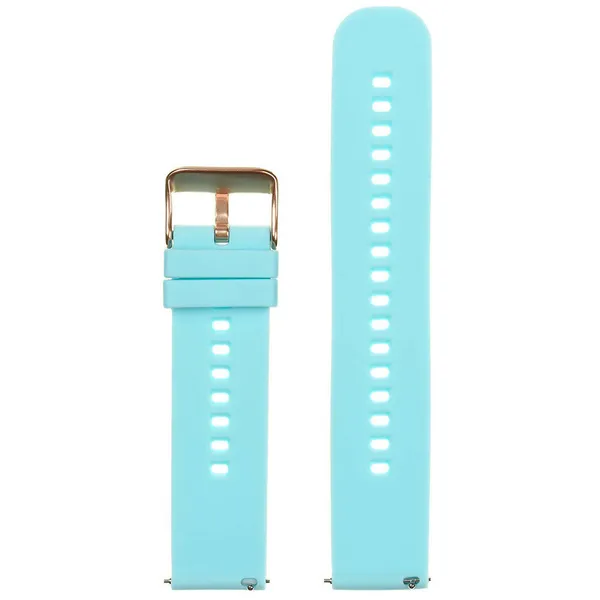 A világoskék, 20 mm-es gumi óraszíj rugalmasan illeszkedik, vízálló és bőrbarát, így hosszú távon is kényelmes viselet. A rozéarany csat és a beépített gyorskioldó mechanika percek alatt biztonságos, esztétikus frissítést nyújt kedvenc 20 mm-es órádnak.