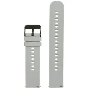 Világosszürke színű gumióraszíj fekete fémcsattal.
