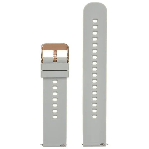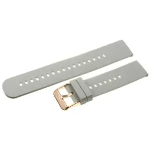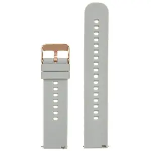 Kényelmes, rugalmas gumióraszíj világosszürke kivitelben, amely gyorskioldós kialakításának köszönhetően pillanatok alatt cserélhető. A rózsaarany színű csat elegáns megjelenést ad, miközben a 22 mm-es szélesség stabil illeszkedést biztosít.
