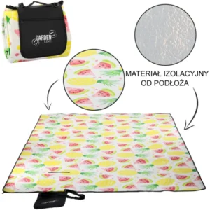 Vízálló piknik pléd gyümölcsmintával, 300×200 cm, alumínium alj