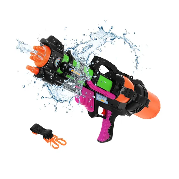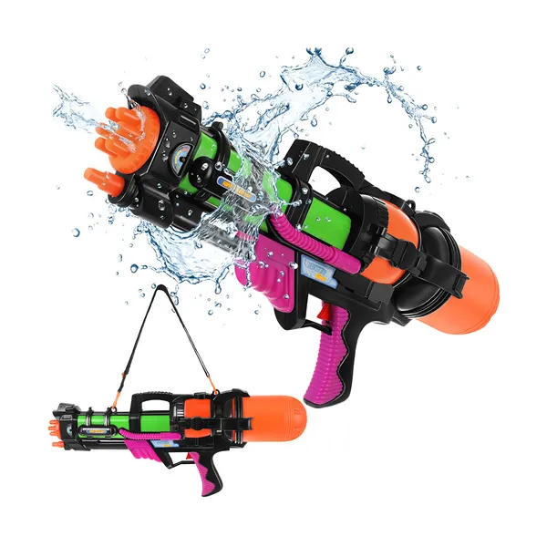 A 60 cm-es vízipuska remek választás nyári kerti játékhoz, strandoláshoz és izgalmas vízicsatákhoz. A nagy, 1,25 literes tartály hosszabb játékidőt biztosít, míg a körülbelül 6 méteres hatótáv még élvezetesebbé teszi a célzást és a mozgás közbeni használatot.