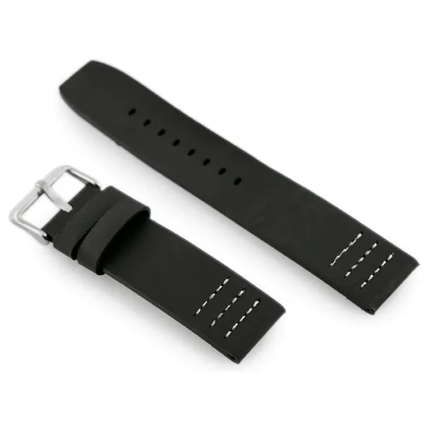 Valódi bőrből készült, kényelmes és tartós óraszíj elegáns fekete színben, kontrasztos fehér varrással. Az ezüst színű fém csat stabil tartást ad, a 24 mm-es csatlakozás pedig számos kompatibilis óratokhoz illeszkedik a gyors stílusfrissítéshez.