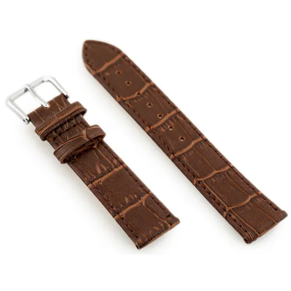 Természetes bőrből készült, sötétbarna óraszíj, amely kényelmes viseletet és időtálló, elegáns megjelenést biztosít a mindennapokban. Az ezüstszínű csat és a hozzáillő varrás harmonikus, igényes összhatást ad.
