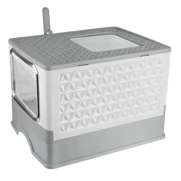 Ez a zárt macskaalom tálca két külön nyílással (bejárat és kijárat) segíti a macska természetes, folyamatos mozgását, miközben tisztábban tartja a környezetet. A zárt kialakítás csökkenti a kiszóródó alom mennyiségét és diszkrétebb toalettzónát biztosít otthon.