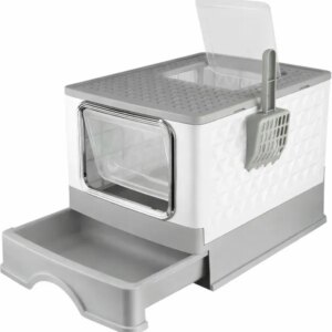 Diszkrét, zárt macskaalom tálca két nyílással, hogy kedvenced kényelmesen be- és kijuthasson, miközben kevesebb alom kerül a padlóra. A kihúzható fiók és a mellékelt alomlapát gyorsabbá teszi a mindennapi takarítást, így tisztább marad a toalett környezete.