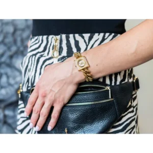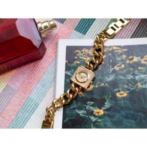 Zegarek Damski Michael Kors Chain Lock MK471 to stylowy, elegancki model dla każdej kobiety. Zegarek ten został wykonany w całości ze stali szlachetnej w kolorze złotym co gwarantuje wieloletnią odporność na zniszczenie. Za niezawodne działanie urządzenia odpowiada dokładny mechanizm kwarcowy zasilany baterią.