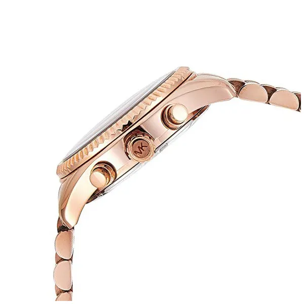 Model Michael Kors MK5569 z serii Lexington to zegarek na stalowej bransolecie w kolorze różowego złota. Oznaczenia godzinowe w postaci cyfr rzymskich oraz indeksów świetnie komponują się z tarczą i wskazówkami. Wyposażony jest w precyzyjny mechanizm kwarcowy, dzięki któremu zegarek dokładanie pokazuje aktualną godzinę. Dostępne funkcje to chronograf, datownik dnia miesiąca oraz 24-godzinne wskazanie czasu. Tarczę ochrania mineralne, odporne na zarysowania szkiełko.