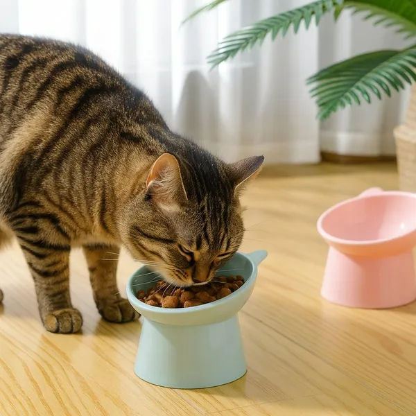 A 15°-ban döntött tál csökkenti a cica nyakterhelését és megkönnyíti az evést, miközben a magasított állvány meggátolja a víz vagy táp kifolyását. Könnyen tisztítható PP műanyagból készült, modern zöld színe bármely lakásdekorba illik.