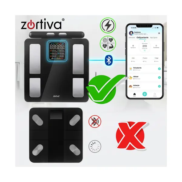 Zortiva Smart Premium testösszetétel mérleg fogantyúval, Wi‑Fi