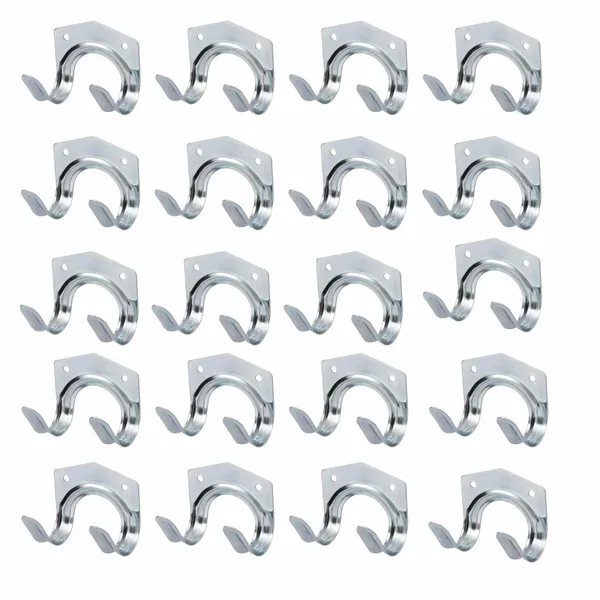 • 20 db falra szerelhető dupla U alakú acél tárolókampó, csavarokkal