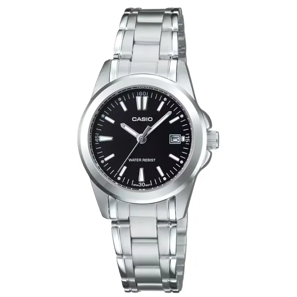 • Női Casio LTP-1215A-1A2DF kvarc karóra, ezüst acél, fekete számlap