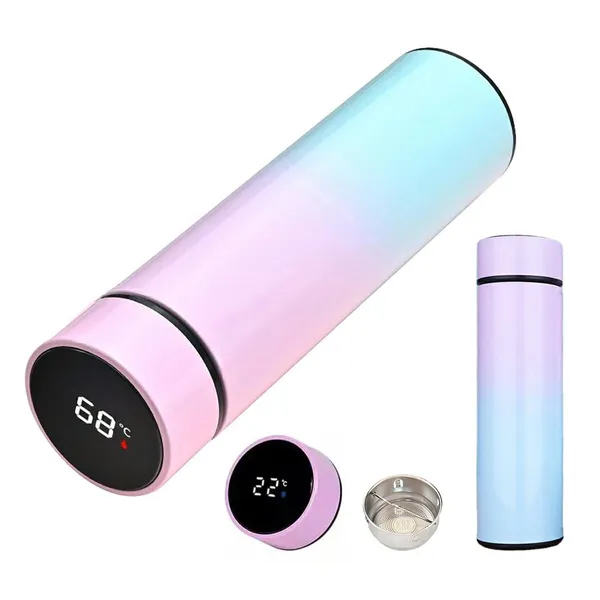 • 500 ml-es rozsdamentes acél termoszbögre LCD hőmérővel, szivárvány